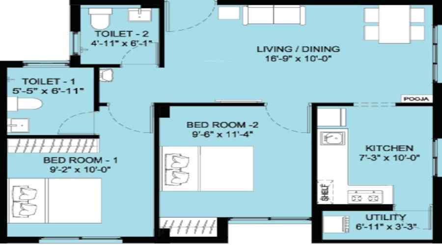 Construction Quality: High-quality materials used, including vitrified tiles and granite countertops