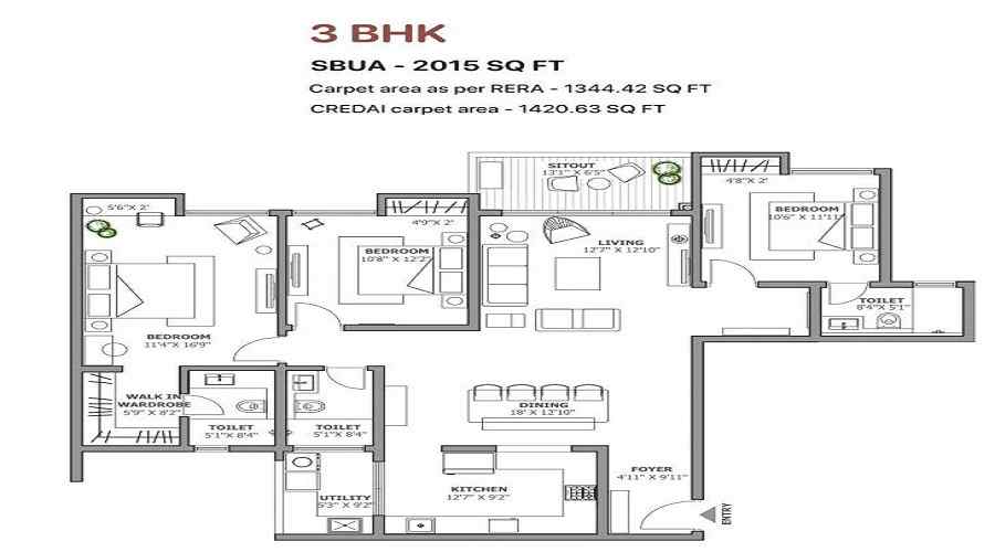 A: The area of project for 3 BHK is 2015 Sq ft.
