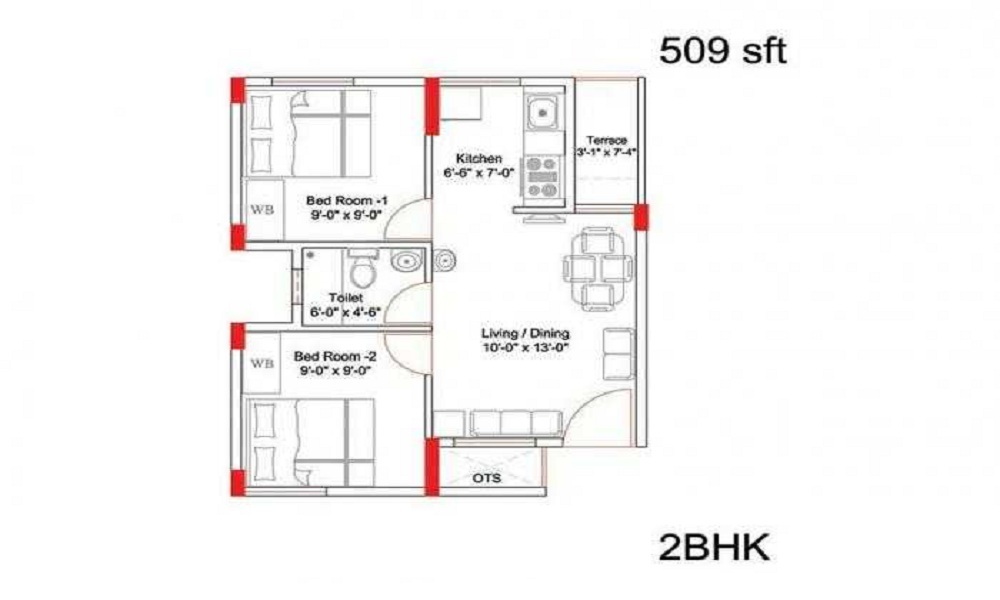 A: The area of project for 2 BHK is 509 Sq ft.