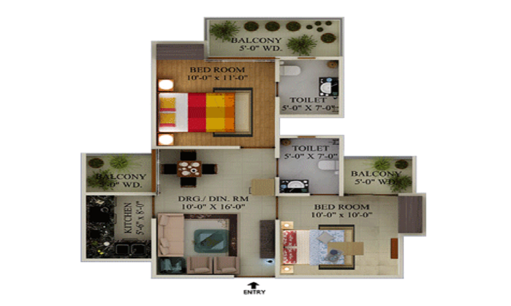 Vitrified tiles in drawing/dining/bedrooms and kitchen