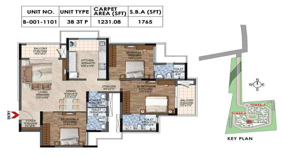 ₹ 1.23 Cr | 1765/sqft-carpet sqft