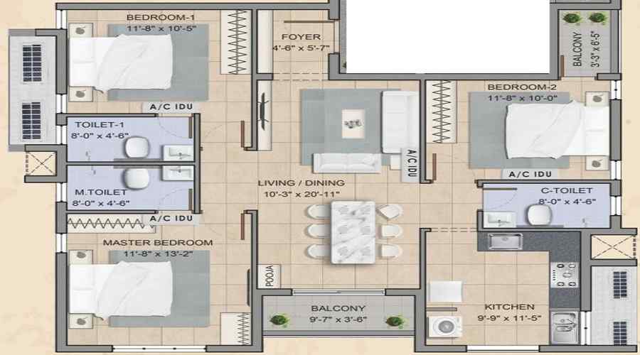 3 BHK+3T Apartments with Size 1367/sqft-carpet sqft for sale at ₹ 87.49 Lakhs in DRA Bliss, Madipakkam Chennai .The unit is Under Construction and has( 3 BHK+3T Bedrooms, 3 Woshroom ). The apartment is available for INR 6400/Per Sq.ft. Negotiable. Reserved Parking is Available for residents. Buy 3 BHK+3T (1367/sqft-carpet sqft) Apartments in DRA Bliss with Best Amenities & Affordable Budget.