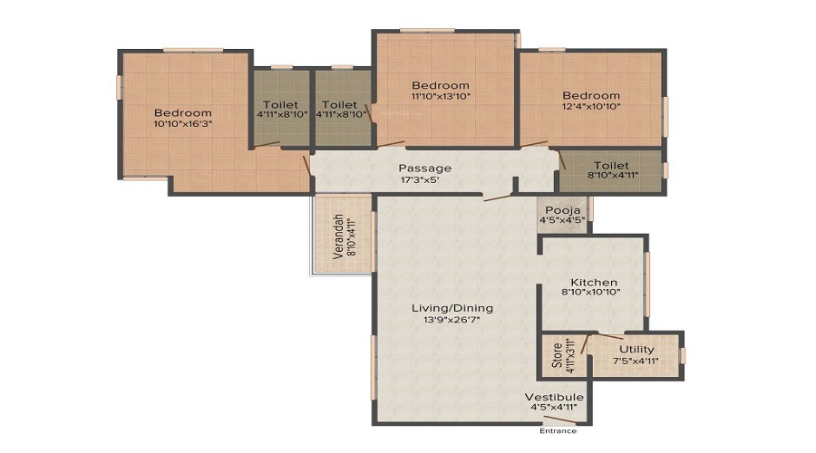 Construction Quality: High-quality materials used, including vitrified tiles and granite countertops