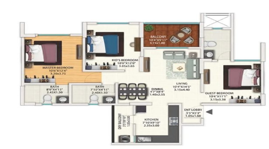 3 BHK+3T Apartments with Size 1058/sqft-carpet sqft for sale at ₹ 1.49 Cr in Geras World of Joy L, Kharadi Pune .The unit is Under Construction and has( 3 BHK+3T Bedrooms, 3 Woshroom ). The apartment is available for INR 14084/Per Sq.ft. Negotiable. Reserved Parking is Available for residents. Buy 3 BHK+3T (1058/sqft-carpet sqft) Apartments in Geras World of Joy L with Best Amenities & Affordable Budget.