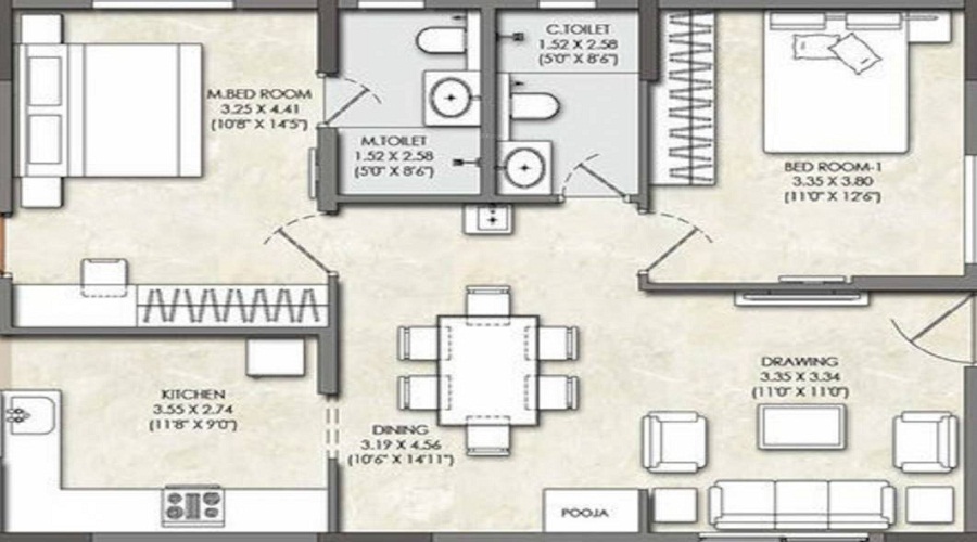 ₹ 86.13 Lakhs | 1566/sqft-saleable sqft