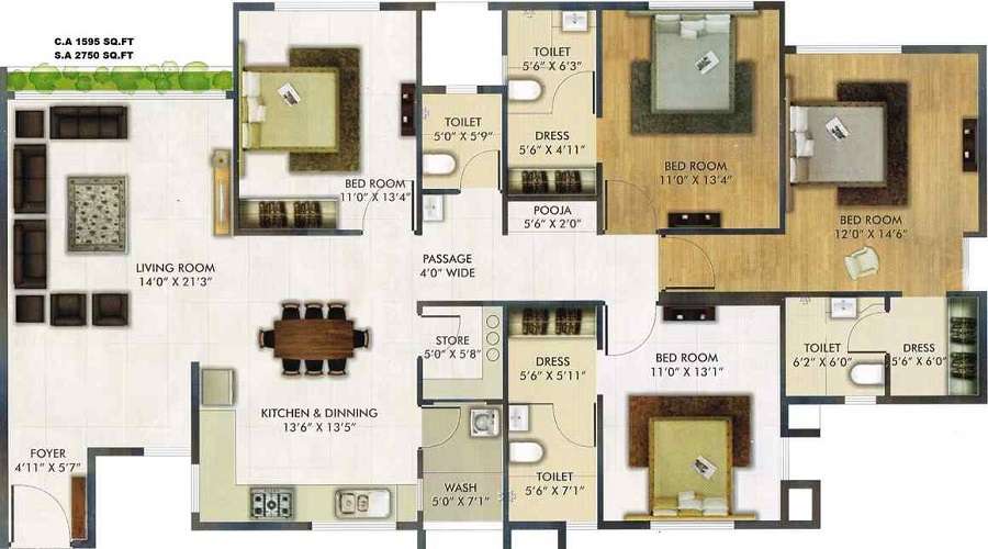 ₹ 1.9 Cr | 1595/sqft-carpet sqft