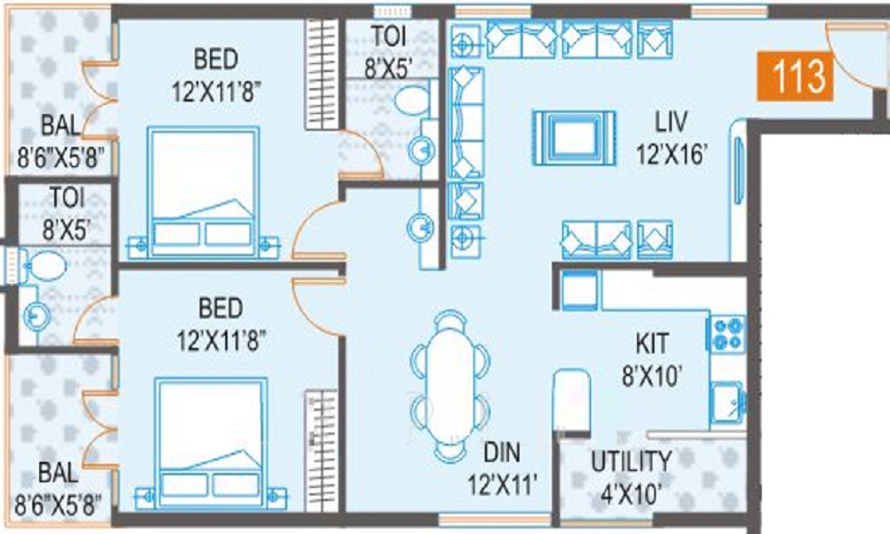 A: The area of project for 2 BHK is 1130 Sq ft.