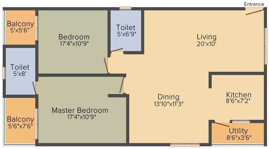 Vitrified tiles flooring in living, dining & lobby Wooden /vitrified tile flooring in bedrooms Vitrified tiles in kitchen. Utility, servant room and toilets in ceramic tiles Staircase & landings to be provided in marble/kota, terrazzo flooring Balconies will be in anti-skid ceramic flooring.