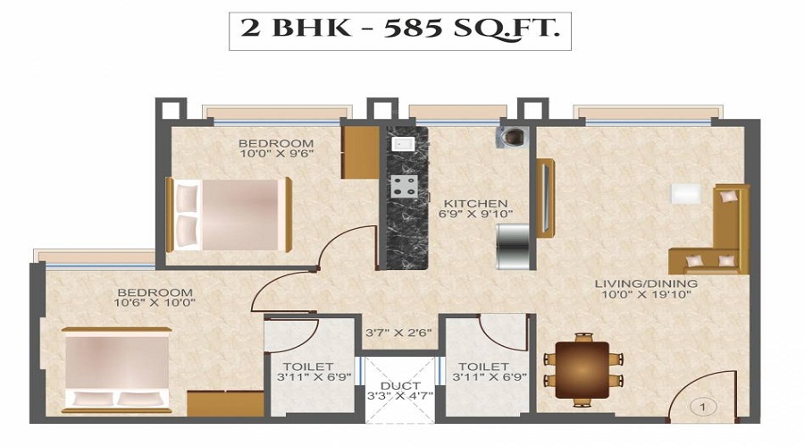 ₹ 63.36 Lakhs | 585/sqft-carpet sqft