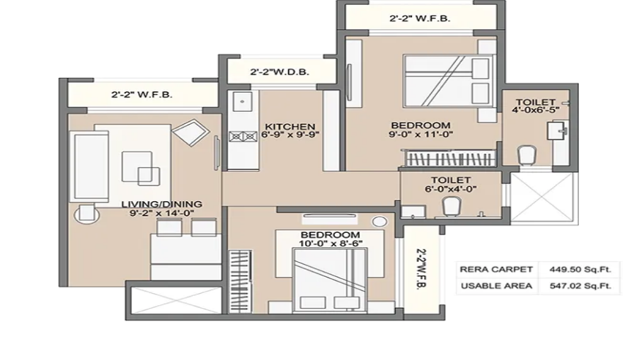2 BHK+2T Apartments with Size 570/sqft-carpet sqft for sale at ₹ 44.47 Lakhs in Sunteck West World, Naigaon East Mumbai .The unit is Under Construction and has( 2 BHK+2T Bedrooms, 2 Woshroom ). The apartment is available for INR 7802/Per Sq.ft. Negotiable. Reserved Parking is Available for residents. Buy 2 BHK+2T (570/sqft-carpet sqft) Apartments in Sunteck West World with Best Amenities & Affordable Budget.