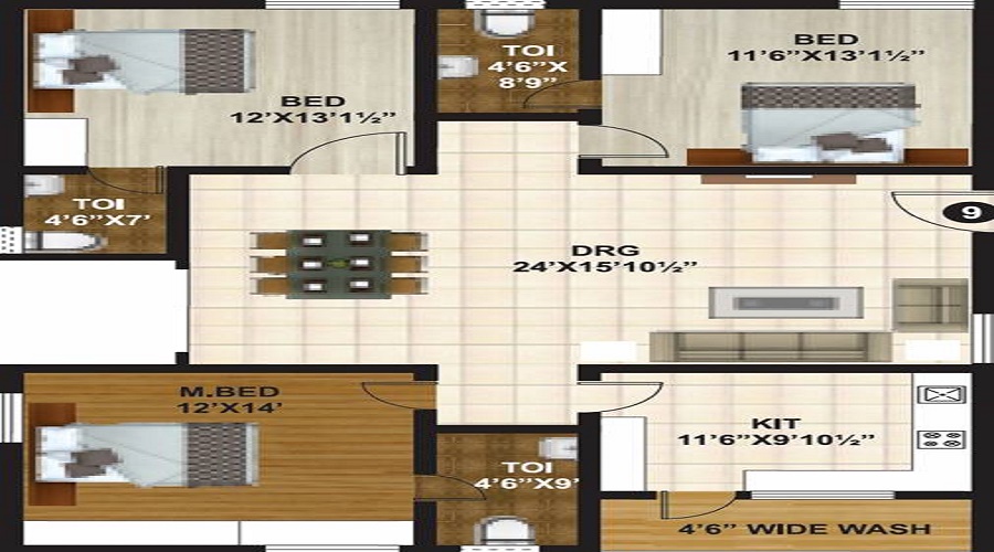 3 BHK+3T Apartments with Size 1710/sqft-saleable sqft for sale at ₹ 94.05 Lakhs in Tirth Signature 1, Rajendra Nagar Hyderabad .The unit is Ready to Move and has( 3 BHK+3T Bedrooms, 3 Woshroom ). The apartment is available for INR 5500/Per Sq.ft. Negotiable. Reserved Parking is Available for residents. Buy 3 BHK+3T (1710/sqft-saleable sqft) Apartments in Tirth Signature 1 with Best Amenities & Affordable Budget.