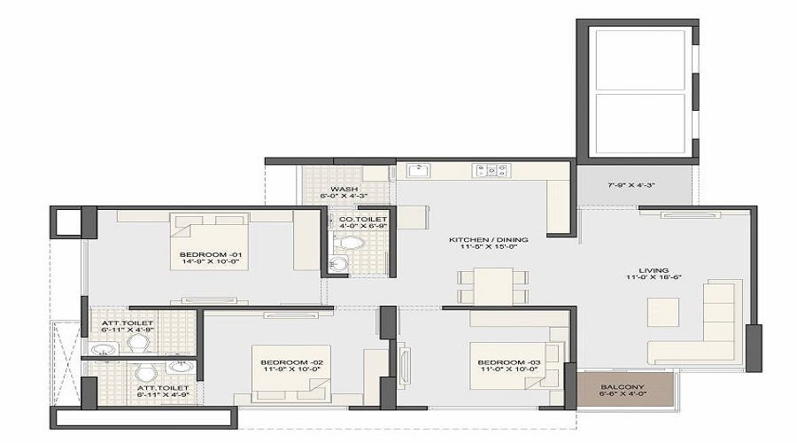 3 BHK+3T Apartments with Size 1845/sqft-carpet sqft for sale at ₹ 66.62 Lakhs in Tri The Evans, Chandkheda Ahmedabad .The unit is New Launch and has( 3 BHK+3T Bedrooms, 3 Woshroom ). The apartment is available for INR 3611/Per Sq.ft. Negotiable. Reserved Parking is Available for residents. Buy 3 BHK+3T (1845/sqft-carpet sqft) Apartments in Tri The Evans with Best Amenities & Affordable Budget.